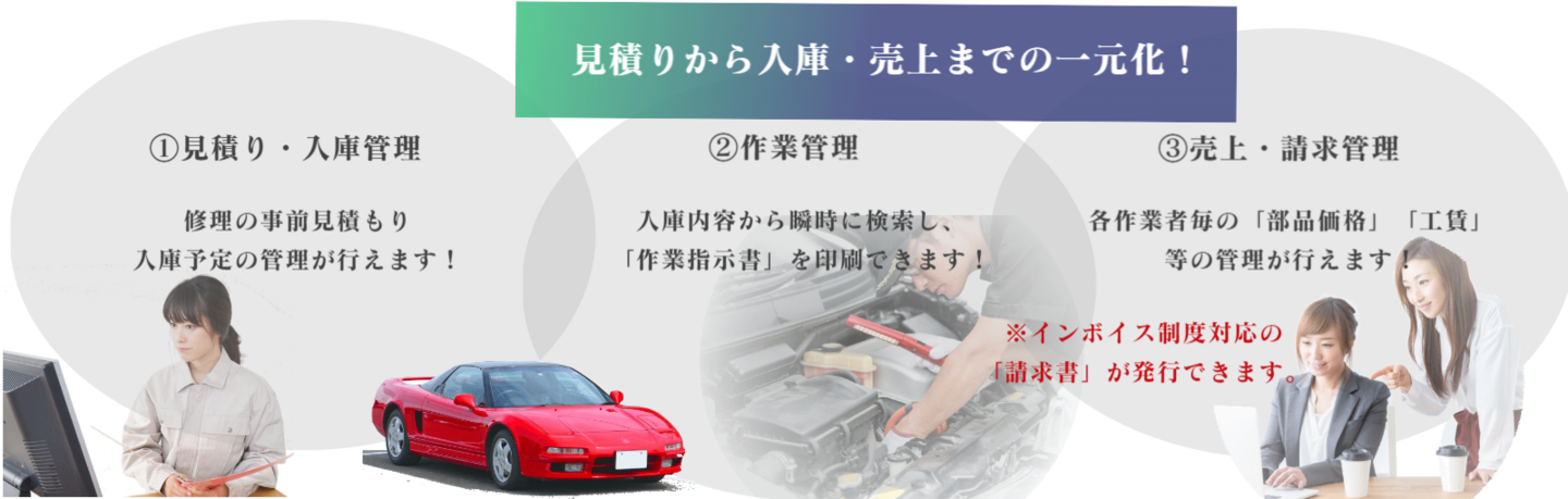 ・請求残高一覧表 | ・車両別車歴照会 | ||
