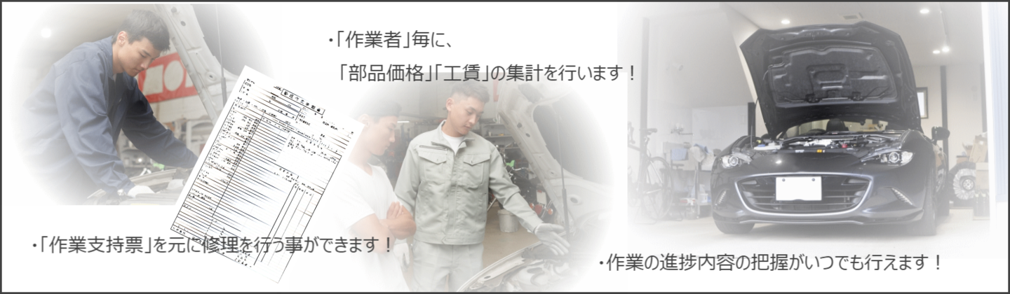 ・顧客名、車種、登録NOを入力する事により、前回の作業履歴から検索し 作業内容を入力します!