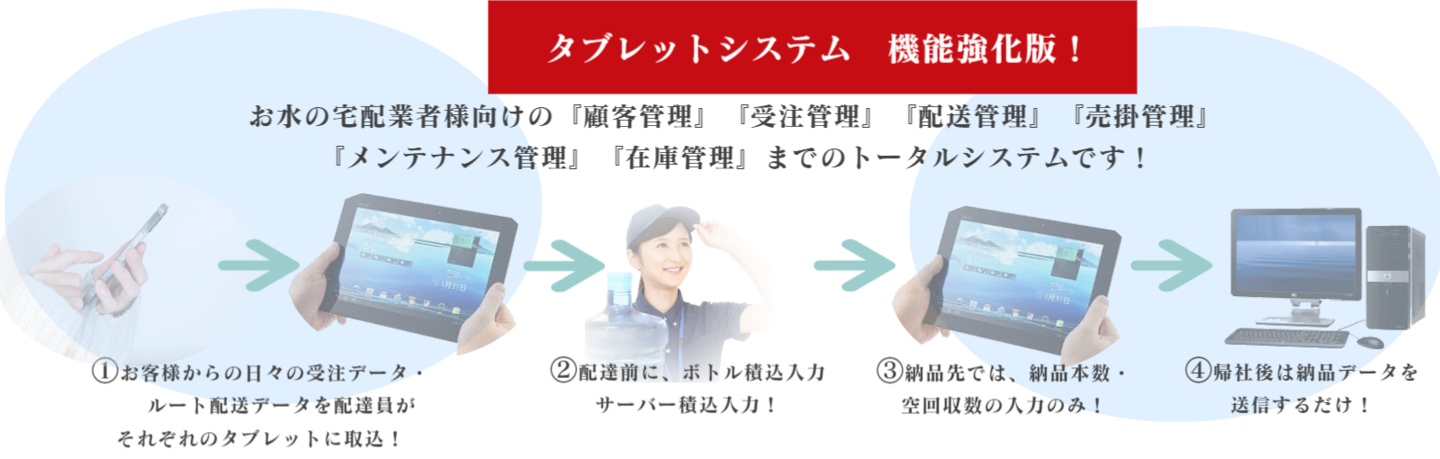 ウォーターサービス業界における、さまざまな例外処理にも対応したソフトです。